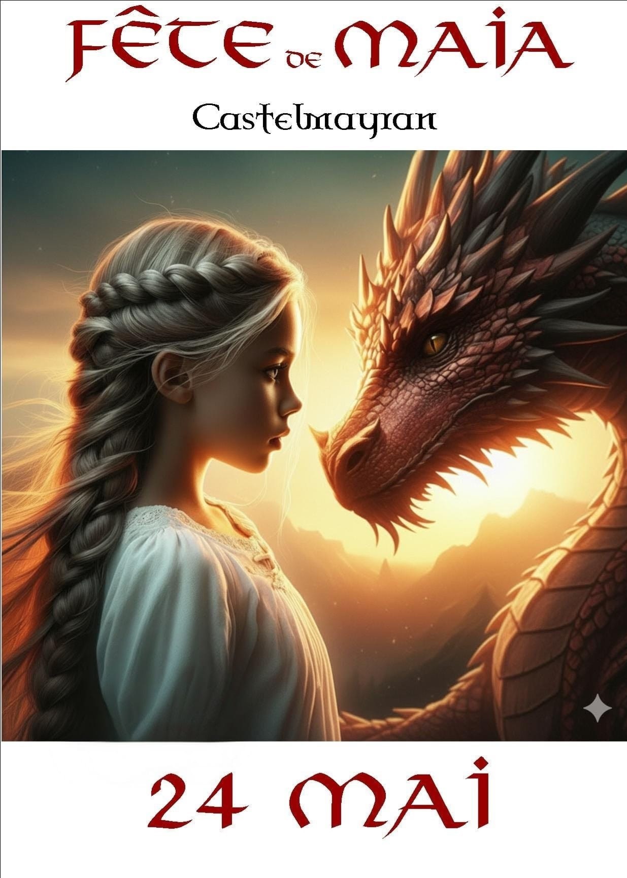 A fantastical immersion where the bravery of the Gauls meets the magic of dragons in a whirlwind of unforgettable festivities! Let yourself be swept away by epic equestrian shows and aerial acrobatics, while comedic performances and playful jugglers will have you roaring with laughter between concerts featuring lively rhythms. In the heart of a Viking-style encampment, test your skills at axe or javelin throwing, admire the mastery of sword fighting, tame our wolves, and have fun with the whole family with our traditional wooden games, our ventrigliss, and other quintessentially Maïa activities. Between exploring our artisanal market brimming with local treasures, you can refuel at our gourmet food trucks, all in a legendary atmosphere where Gallic history comes to life under the watchful gaze of winged creatures. By Toutatis, don’t miss this unique event at the Fête de Maïa!