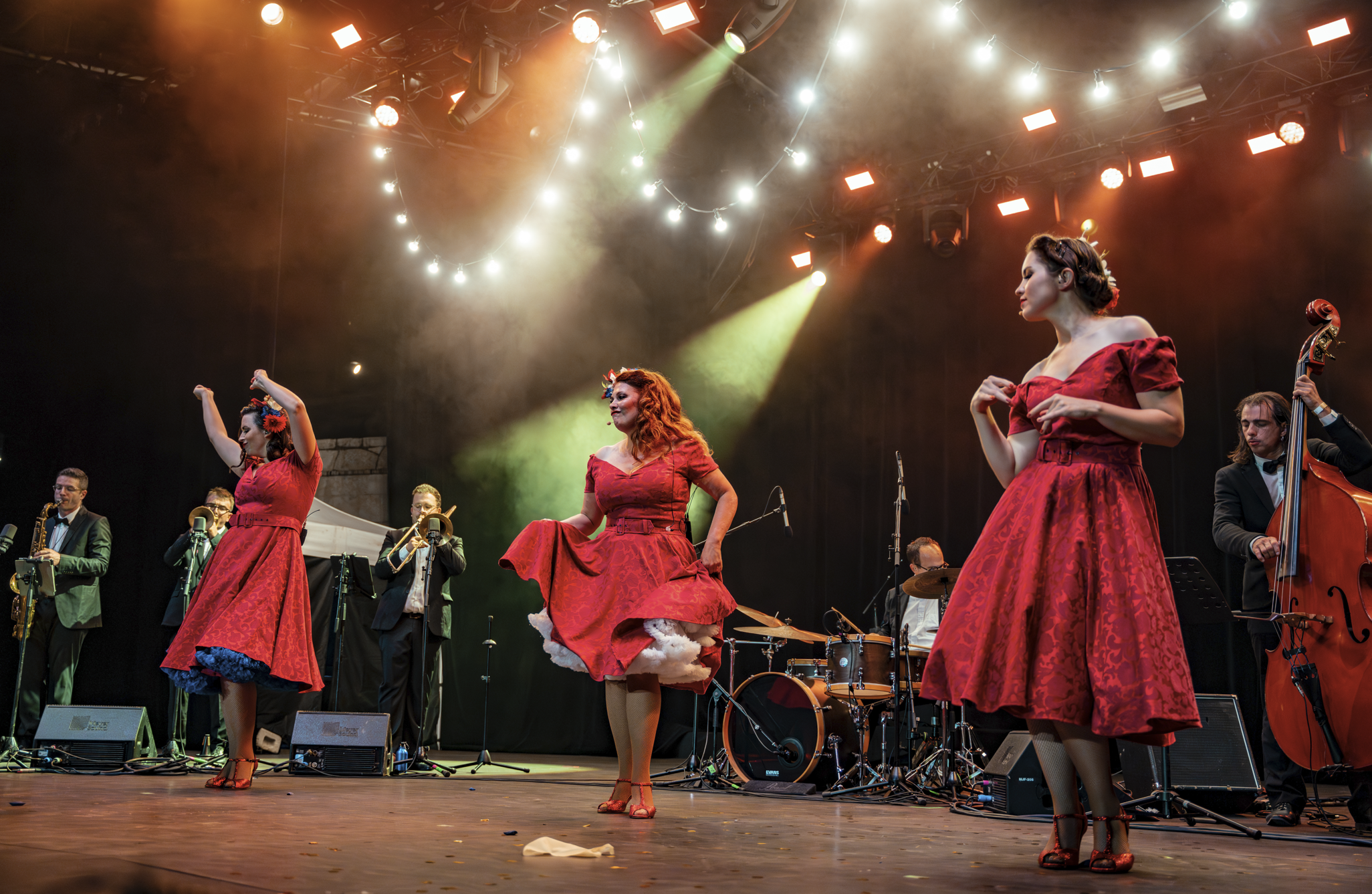 Our trio of singers, accompanied by 3 to 6 musicians and a pair of dancers, presents a repertoire that defined the 1940s—featuring artists like Duke Ellington and Glenn Miller—and pays a special tribute to the Andrews Sisters, whose exceptional vocal harmony and infectious energy left an indelible mark on the world of music.