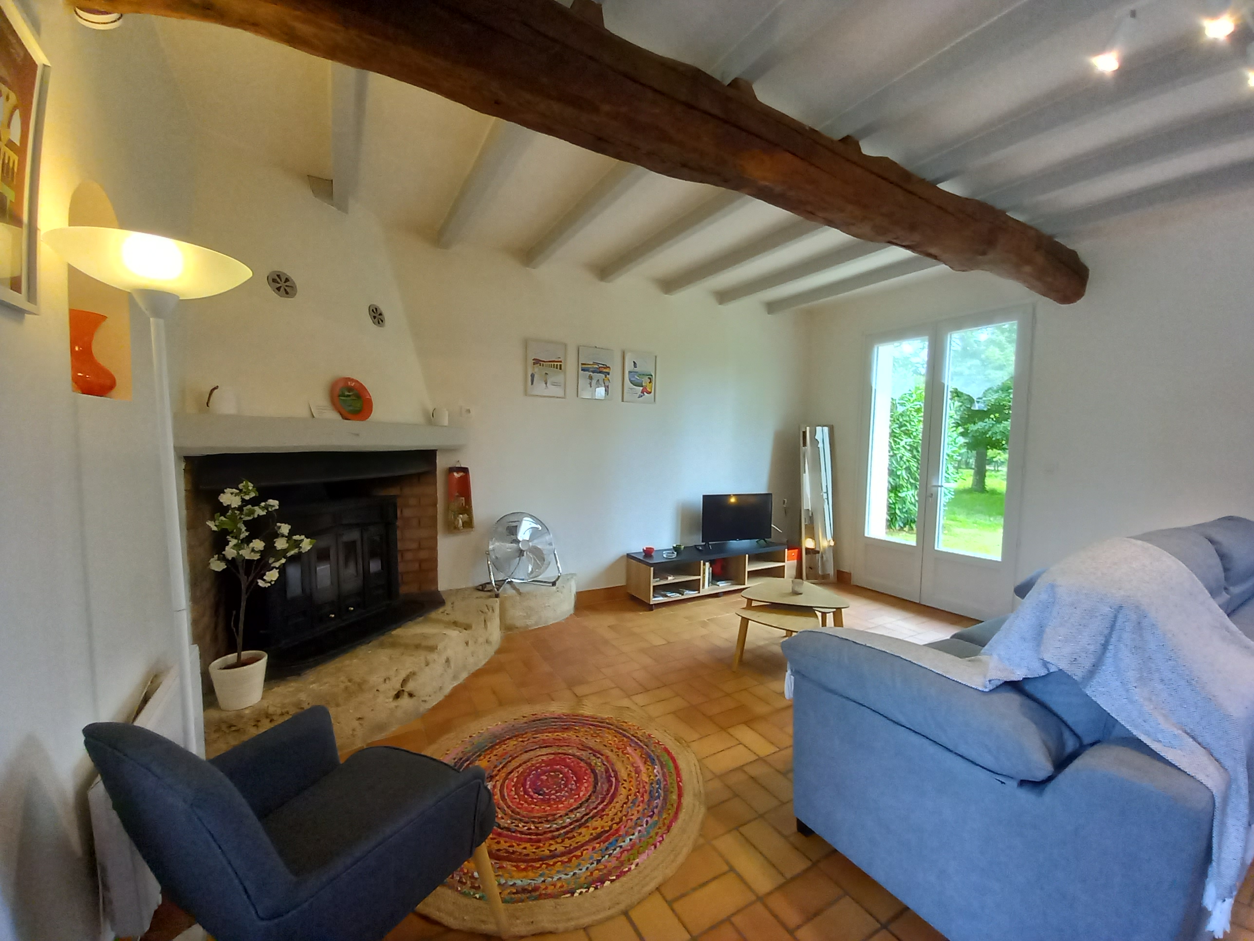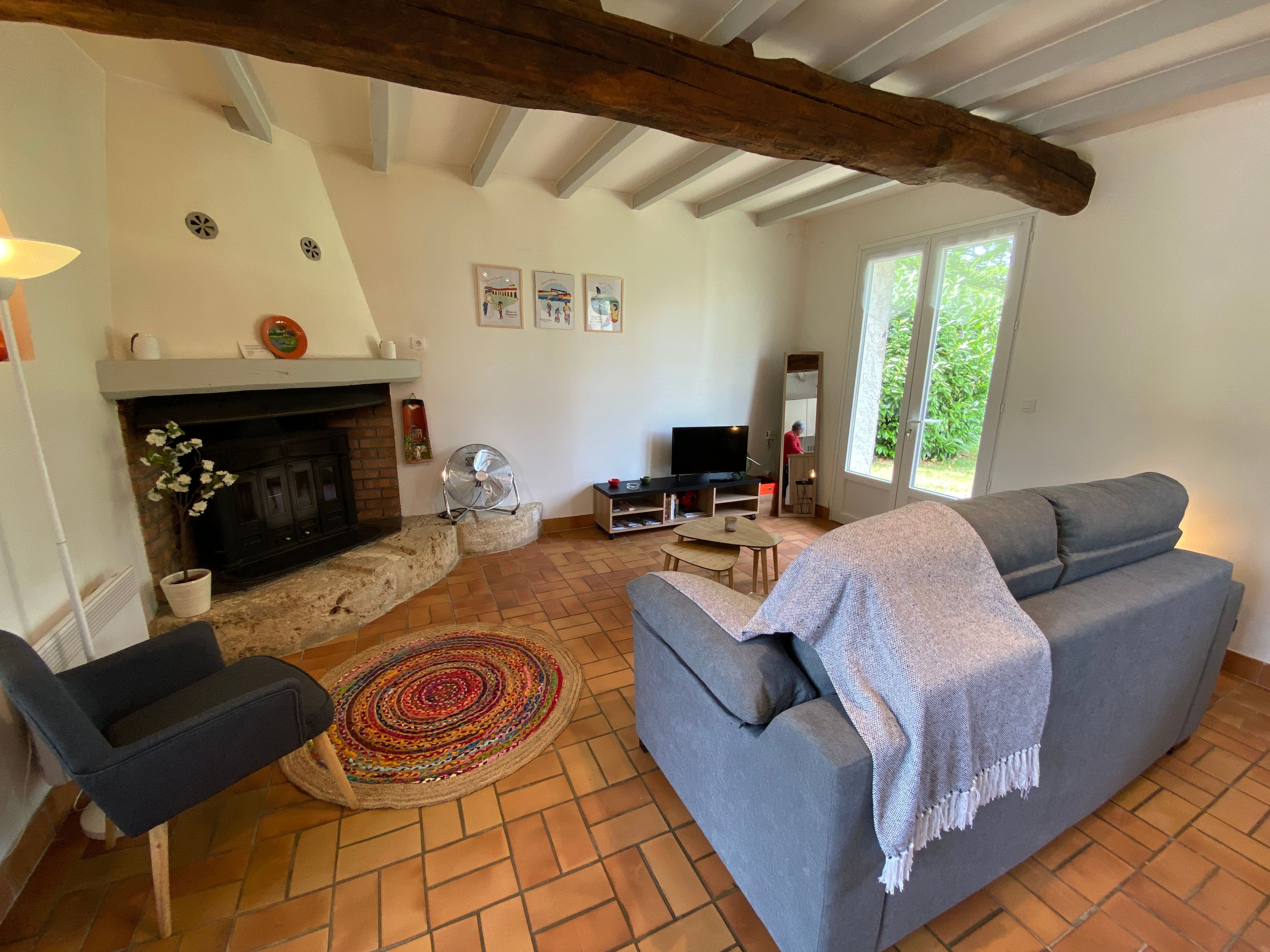 Single-storey gîte – studio – with a living area with kitchenette (oven, dishwasher), sitting area (1 armchair, wood-burning stove, TV with DVD player and USB stick), comfortable sofa bed (1 double bed), 1 shower room with washing machine and towel dryer, 1 separate toilet with washbasin. Private covered terrace (15 m2). Parking space. Barbecue, garden furniture. Heating: electric radiators. Price includes: bed linen and towels supplied, bed made on arrival, wood, wifi internet connection.