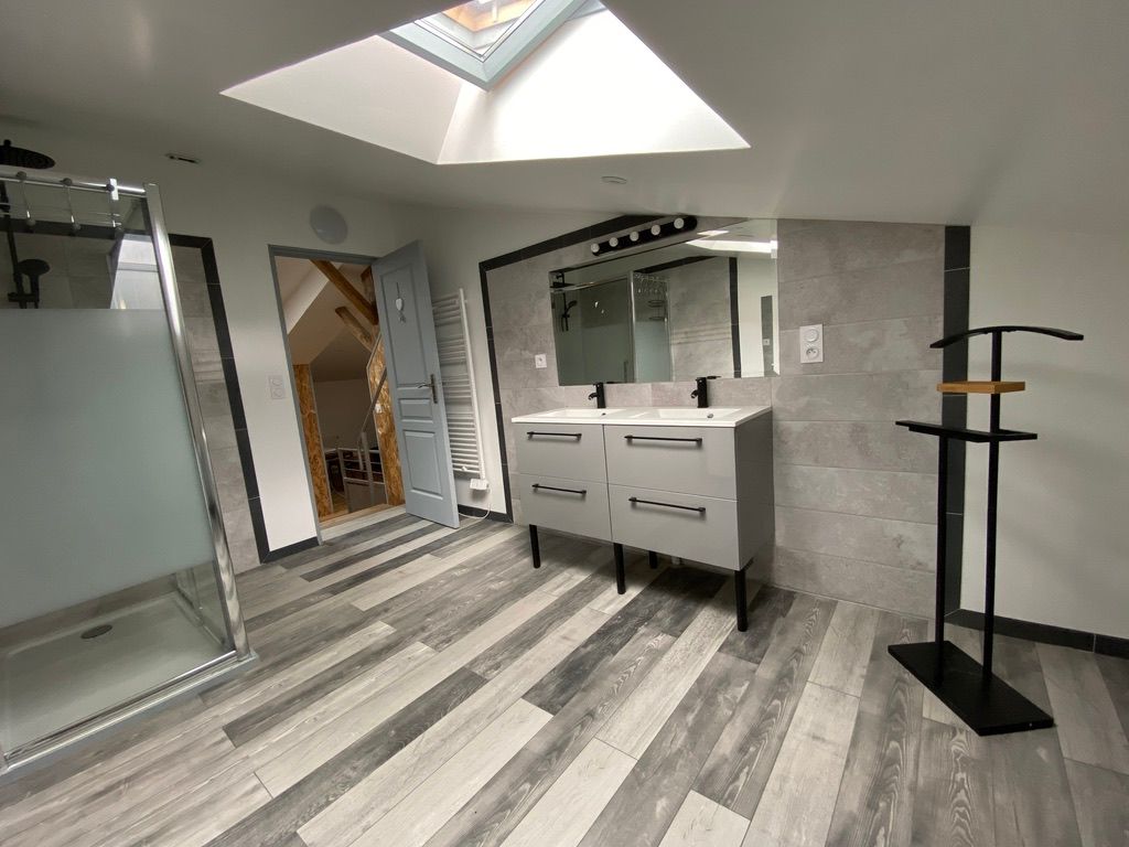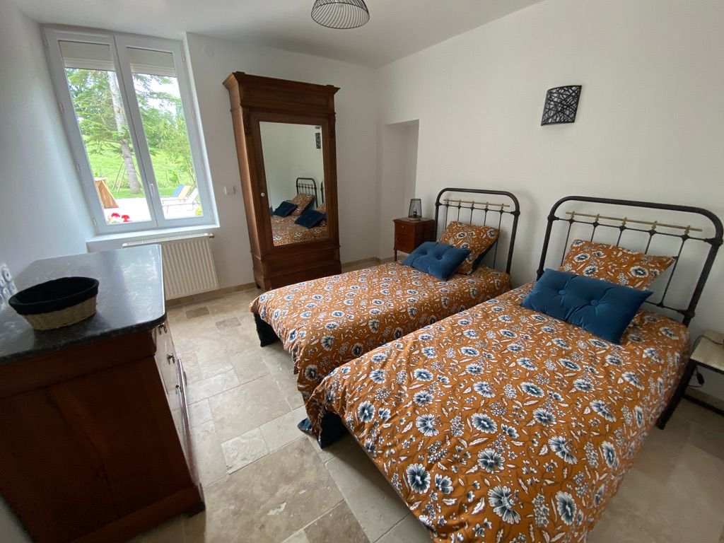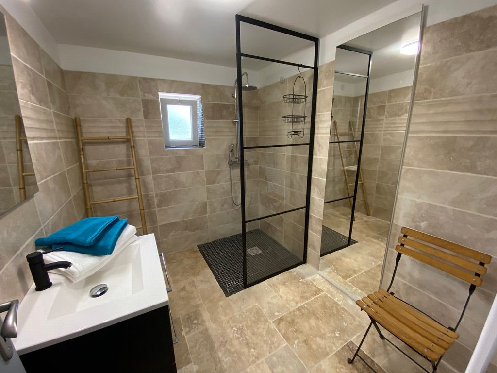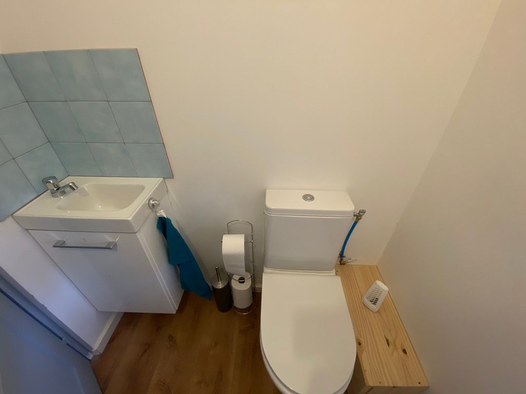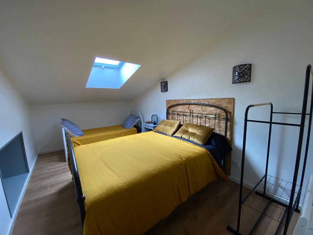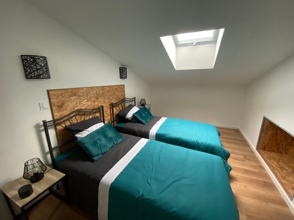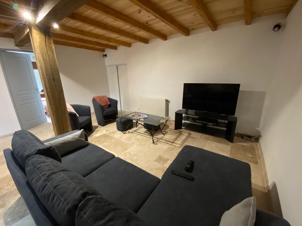 The ground floor comprises a living room with fitted kitchen (fitted units with dishwasher, fridge, freezer, microwave, hob and oven), a dining area (table and chairs), opening onto a lounge (corner sofa and two armchairs and two footstools, TV). There is a bedroom (2 x 0.90cm beds), a shower room(…)