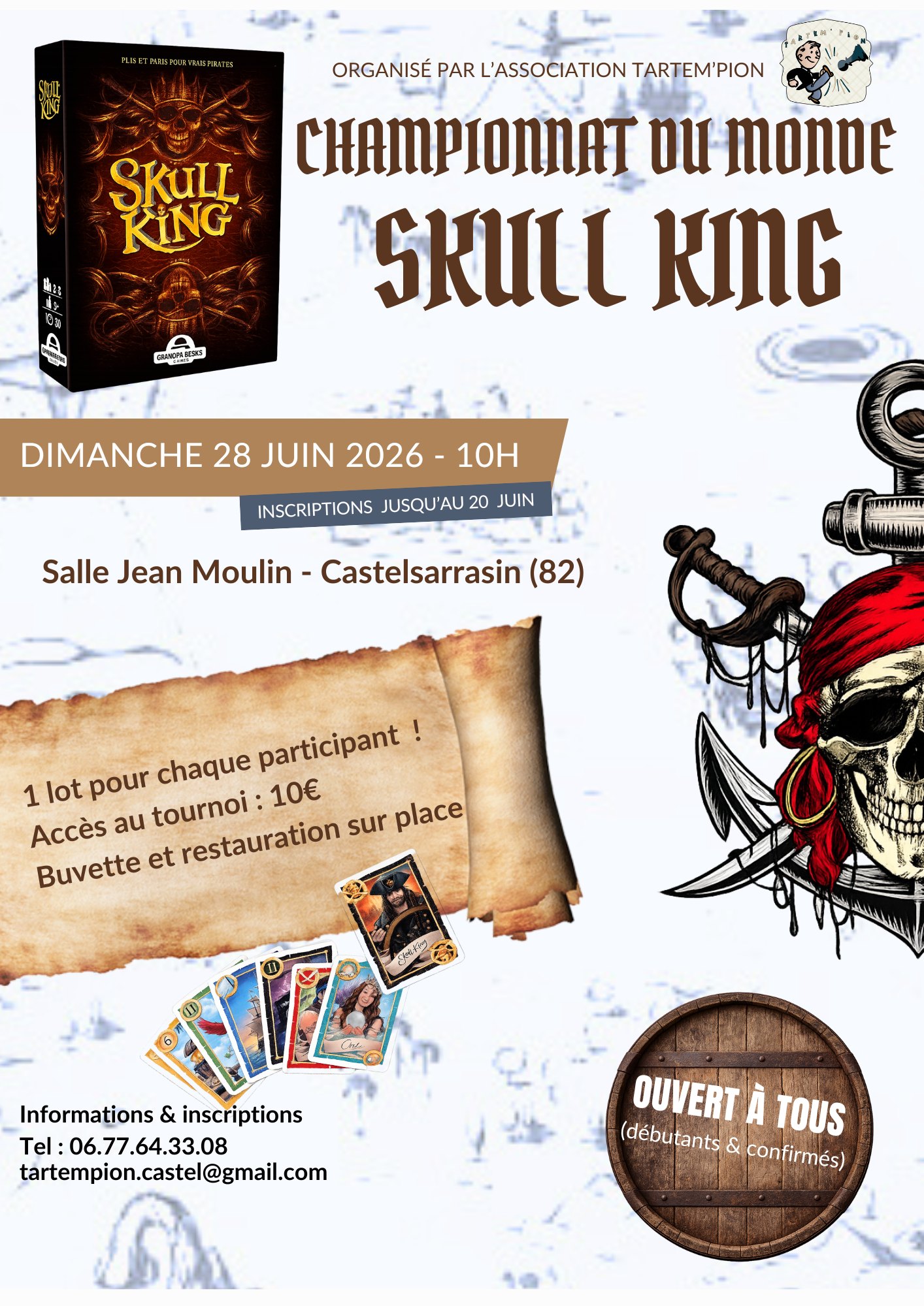 La asociación Tartem’Pion organizará el 28 de junio en Castelsarrasin un evento en torno al juego de mesa Skull King. Inscripciones hasta el 20 de junio de 2026.