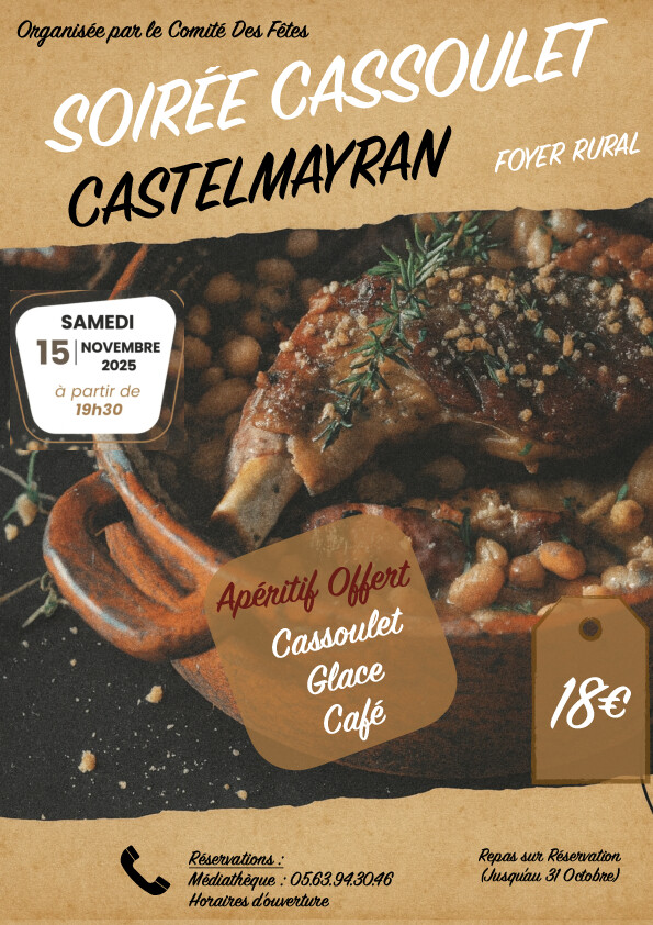 Soirée Cassoulet Foyer rural3 rue Malbec82210 Castelmayran