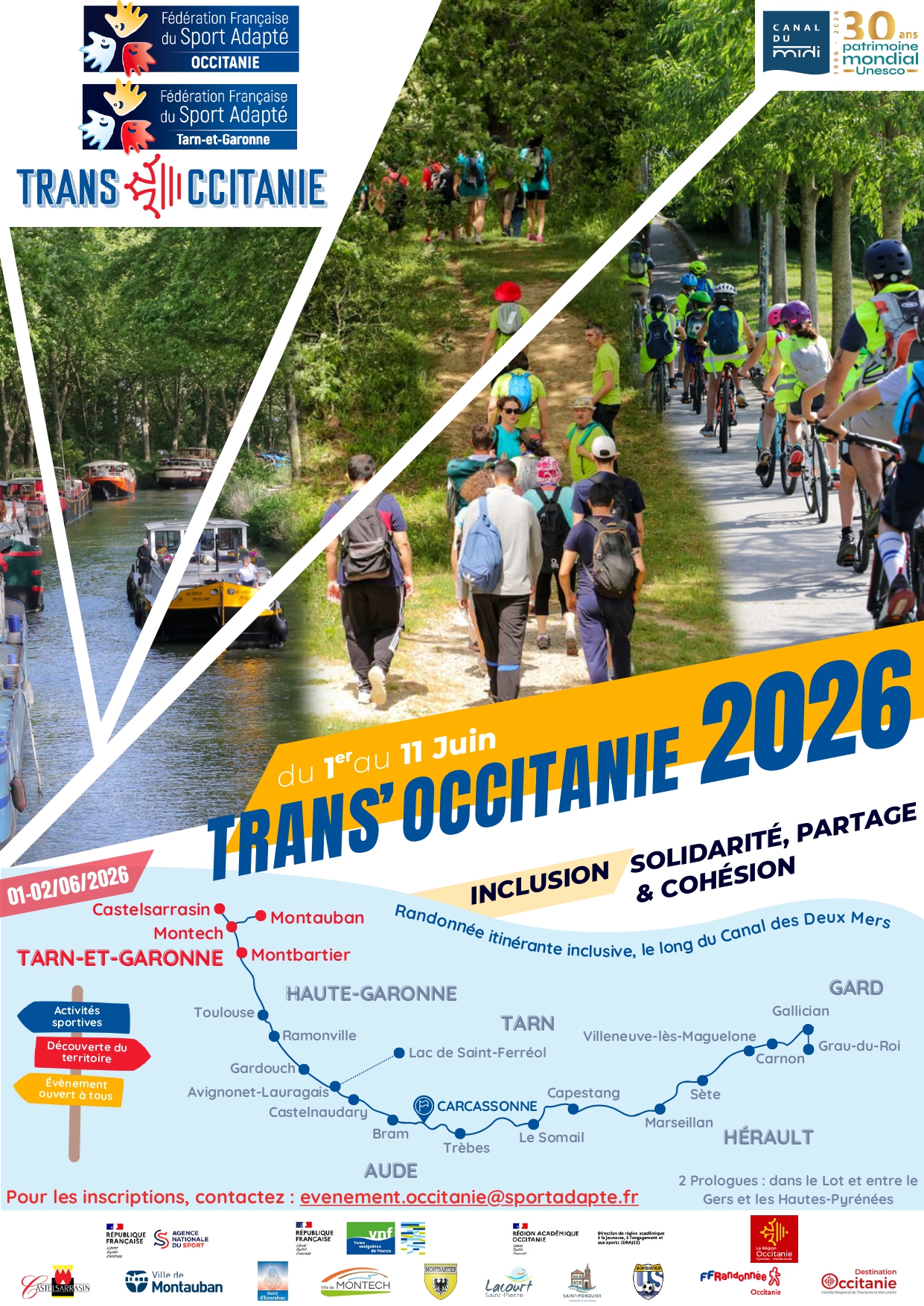 La Trans’Occitanie es un recorrido inclusivo organizado por la Ligue du Sport Adapté Occitanie y dirigido localmente por los Comités Départementaux du Sport Adapté (CDSA). Destinado a personas con problemas de neurodesarrollo y/o de salud mental, recorre el Canal des Deux Mers, incluido el Canal Latéral à la Garonne en Tarn-et-Garonne, para (re)descubrir nuestra región occitana.