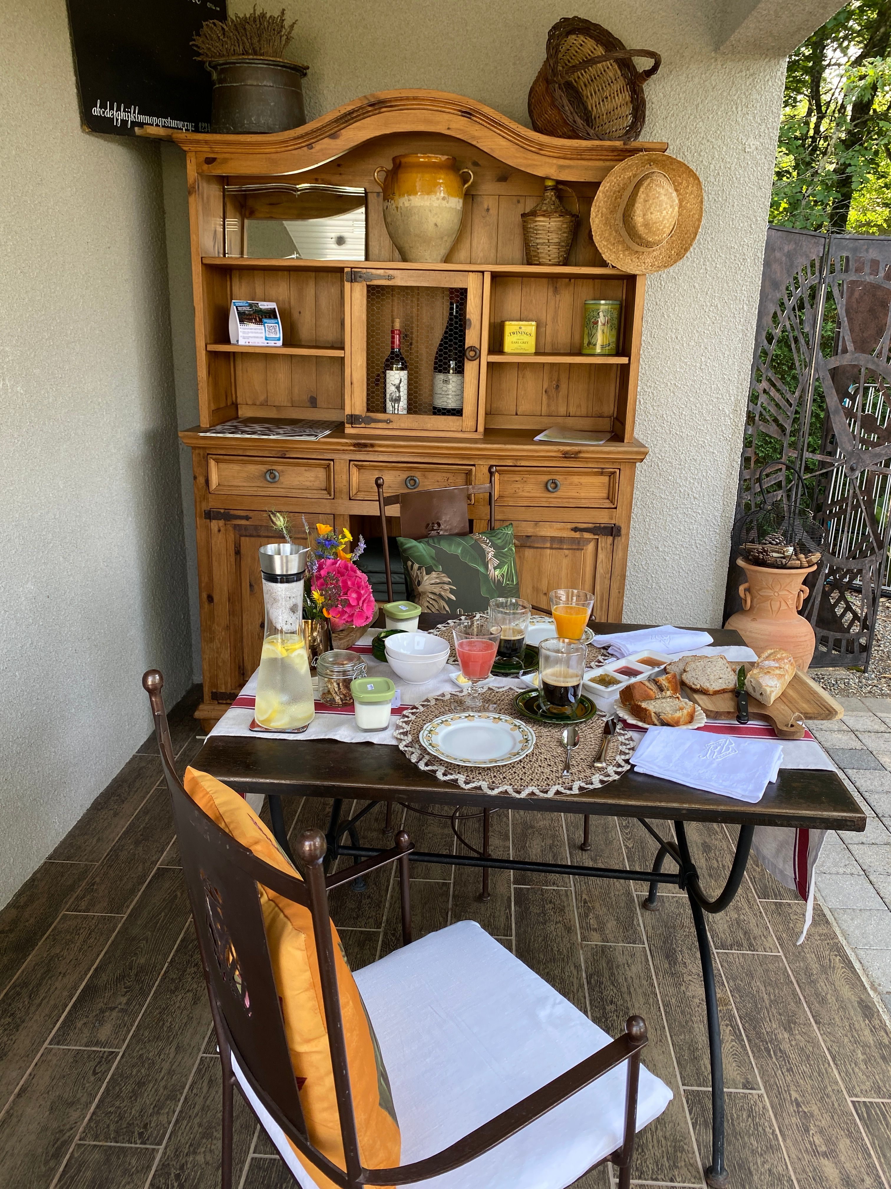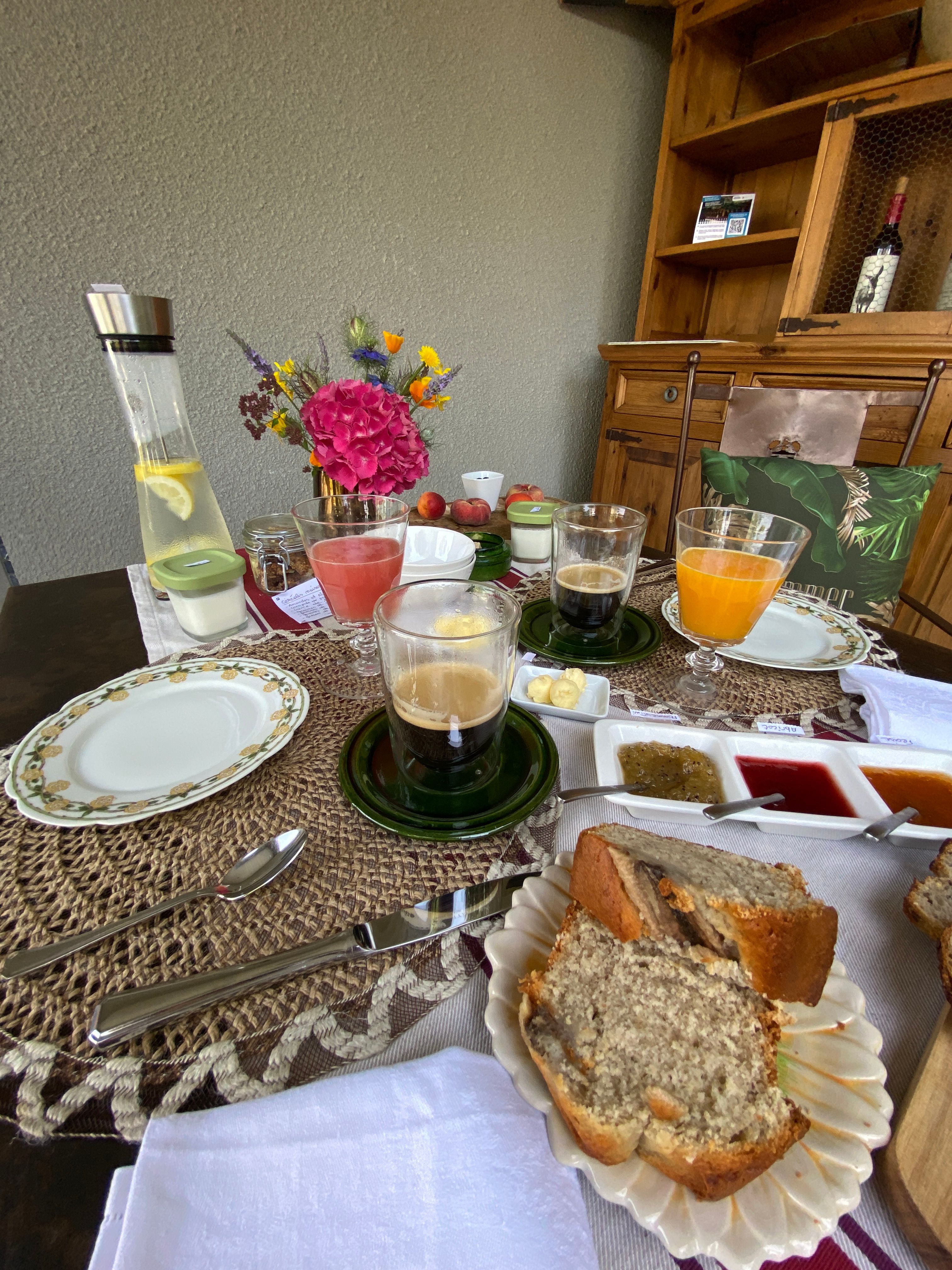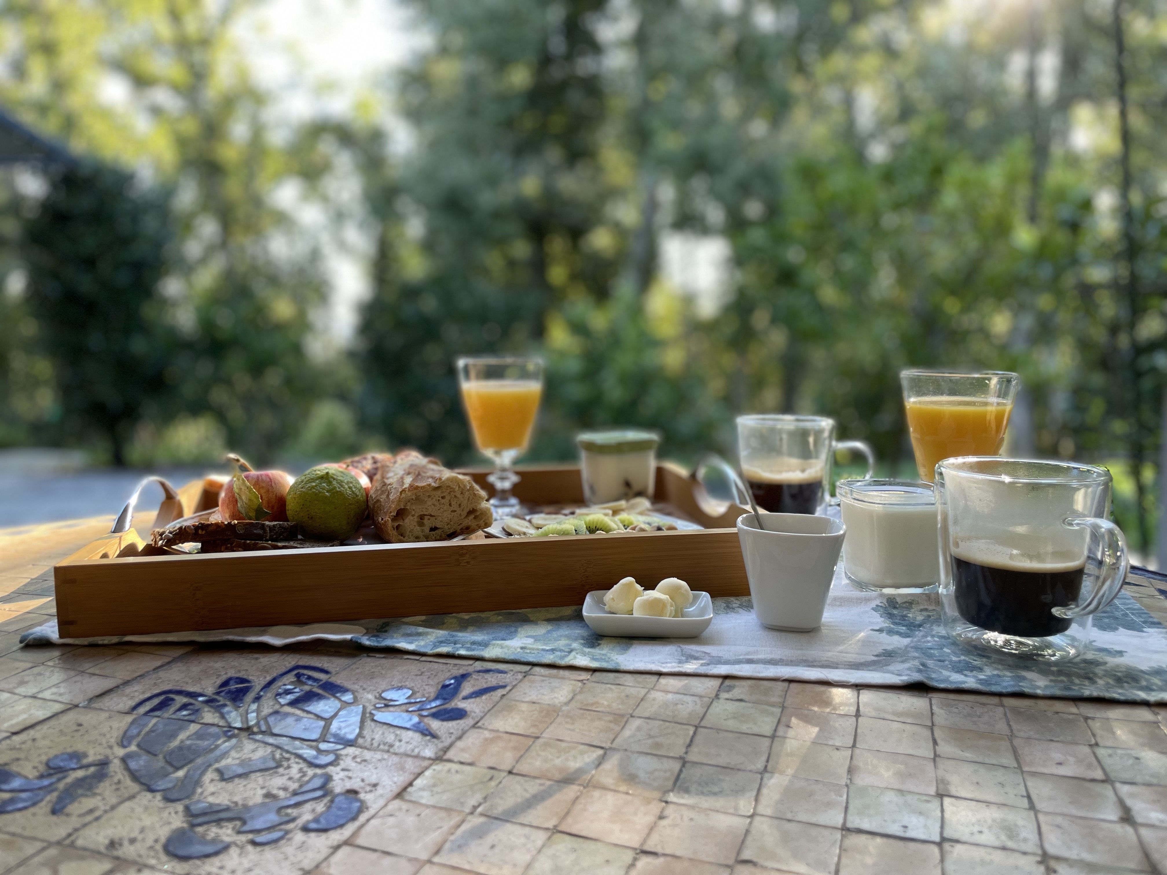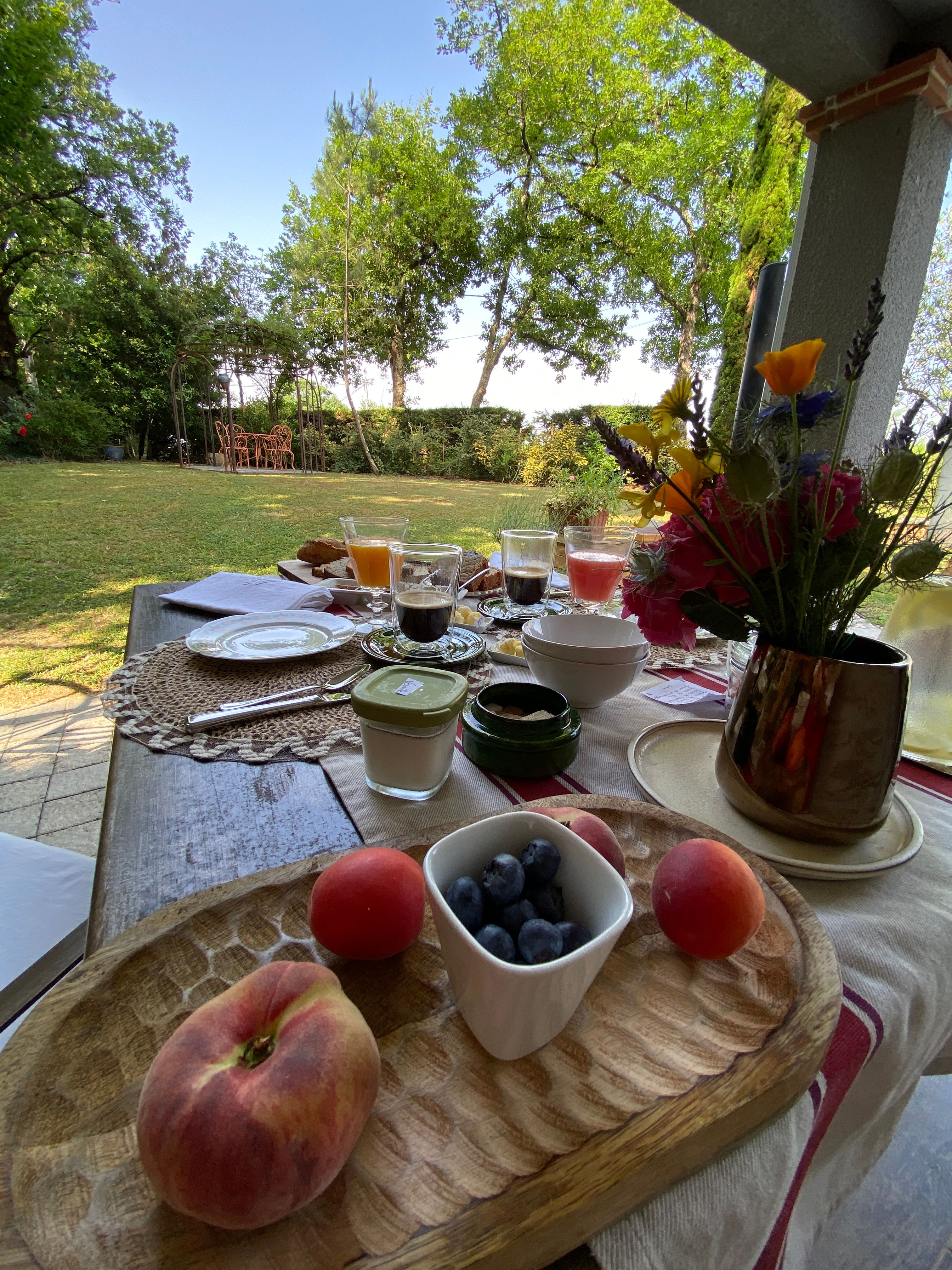 Habitación independiente con acceso directo a la piscina y al jardín. Terraza contigua y cenador a la sombra de los robles.Desayuno equilibrado con fruta de temporada y zumos caseros, así como mermeladas y compotas.