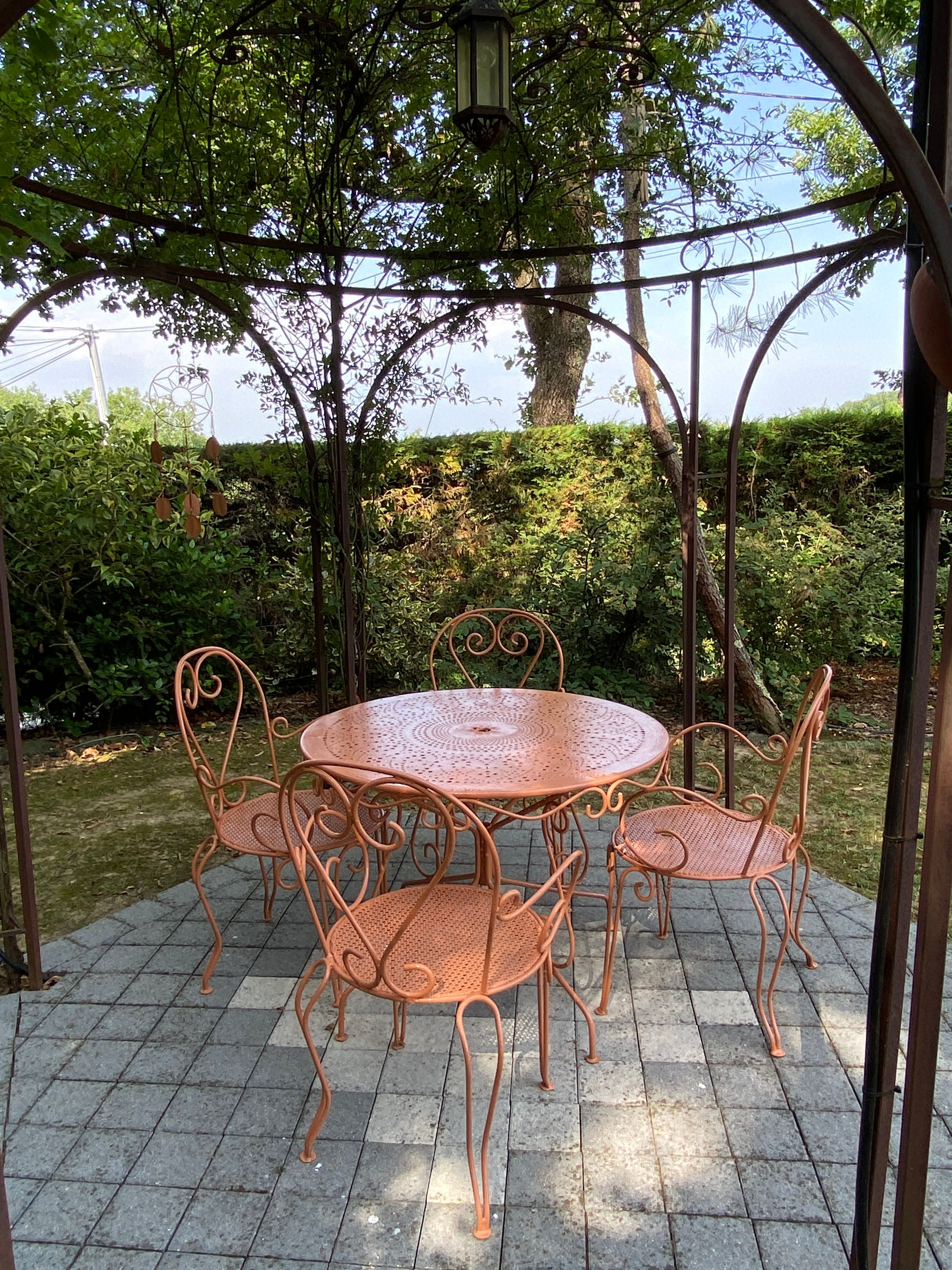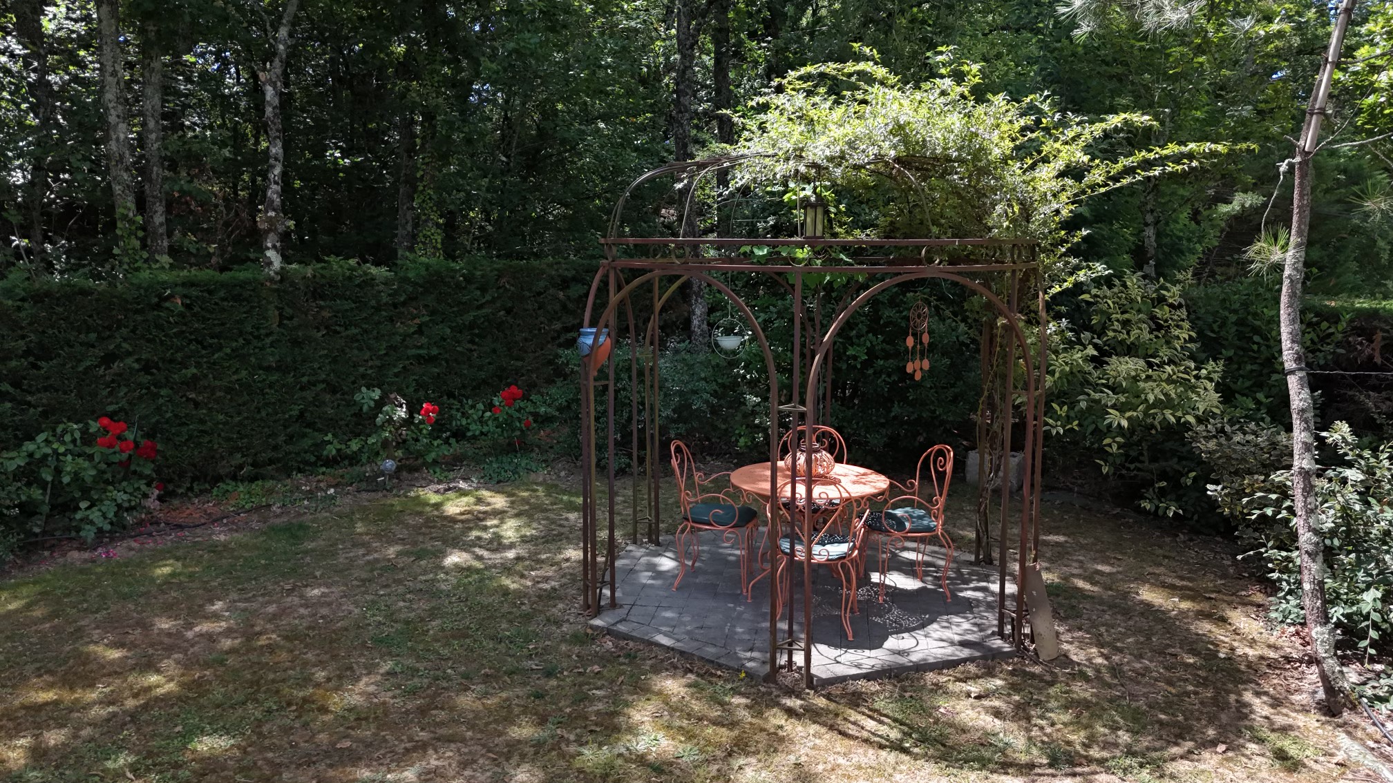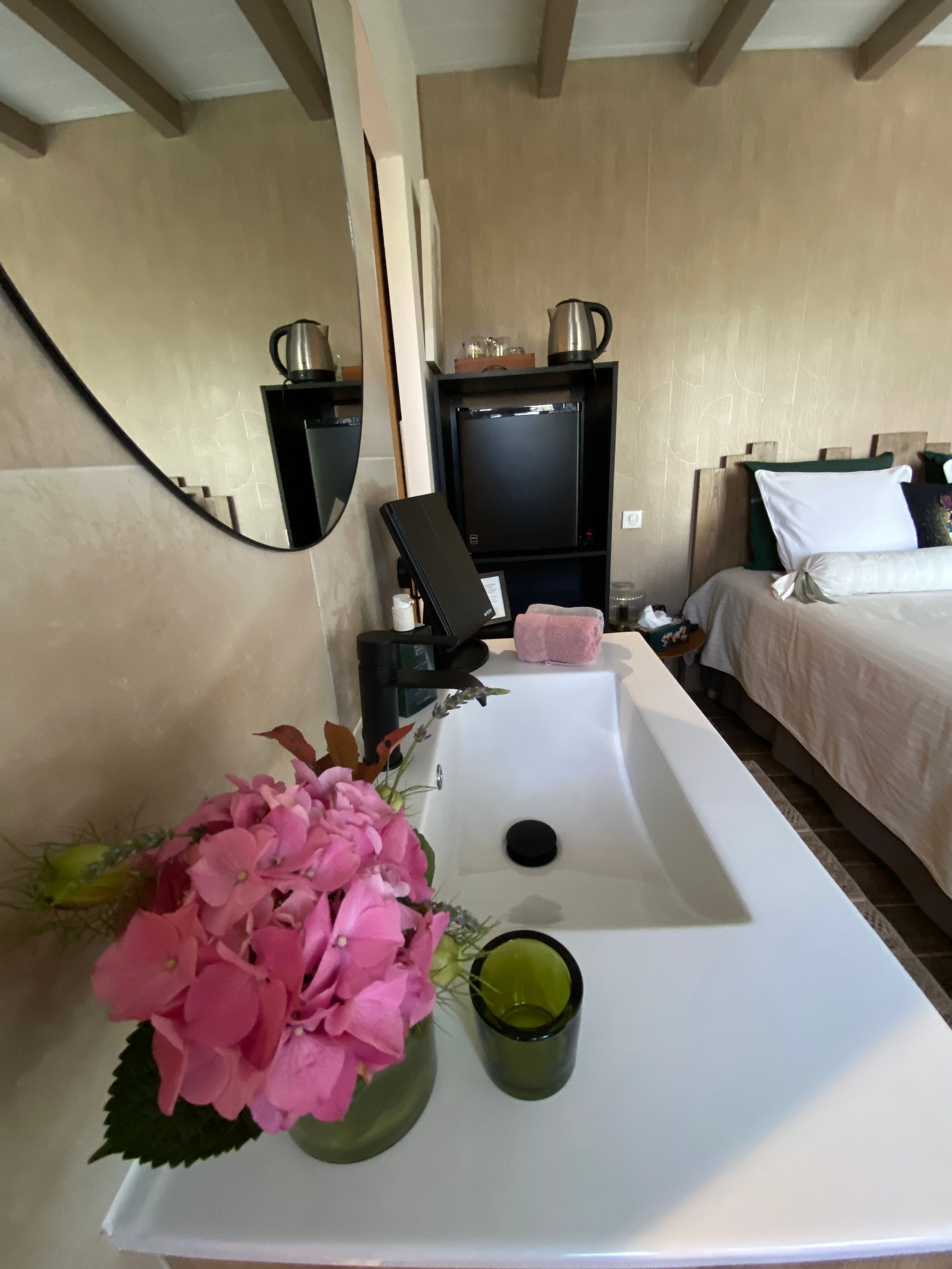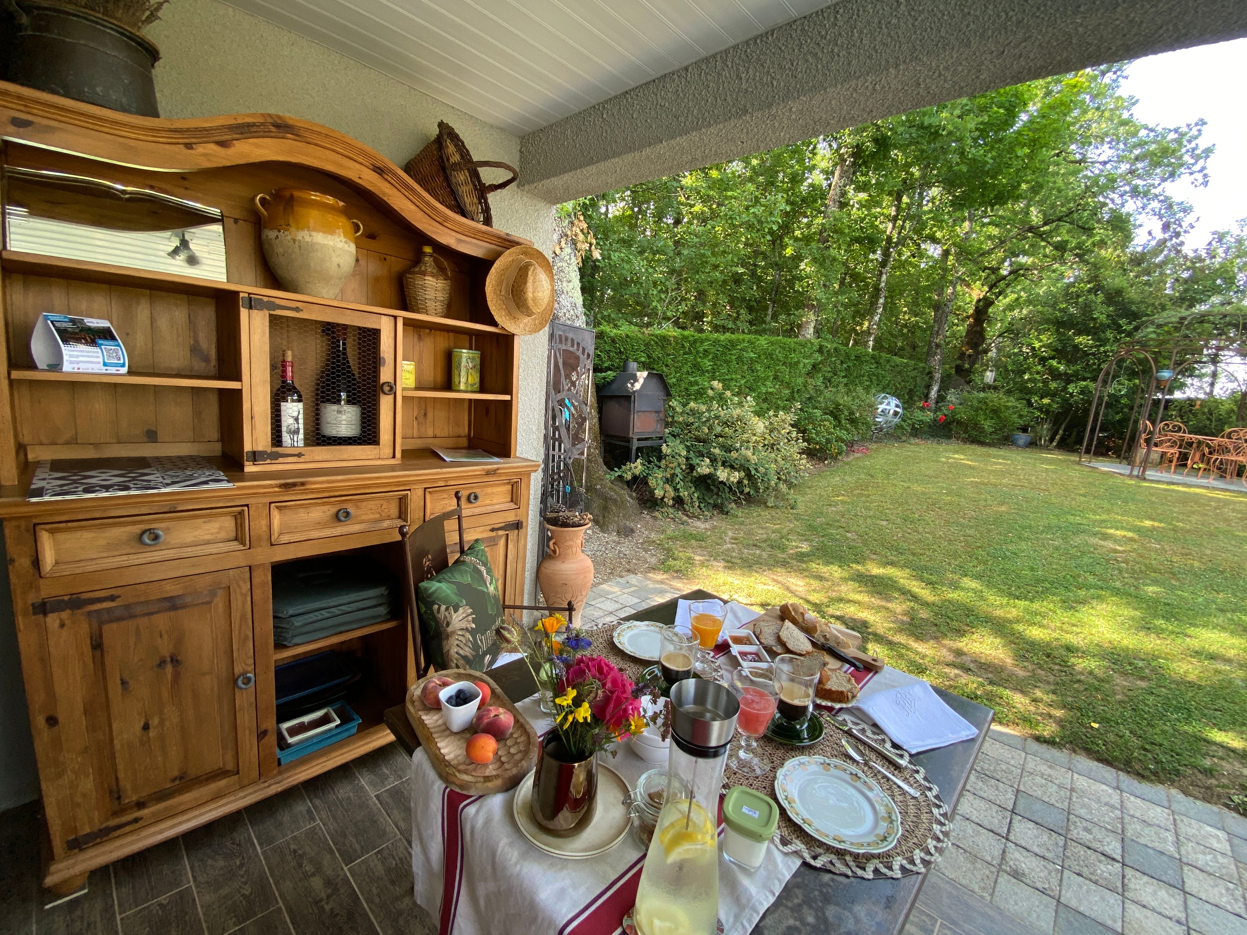 Dans une dépendance parfaitement aménagé la chambre d’hôtes vous attend avec 1 lit 160, une salle d’eau ouverte avec lavabo, douche (robinet thermostatique), wc séparés fermés. Fauteuils, plateau de courtoisie, télévision, wifi, climatisation. Espace extérieur protégé avec table chaises et le nécessaire pour pique-niquer (assiettes couverts verres) Tonnelle avec salon(…)