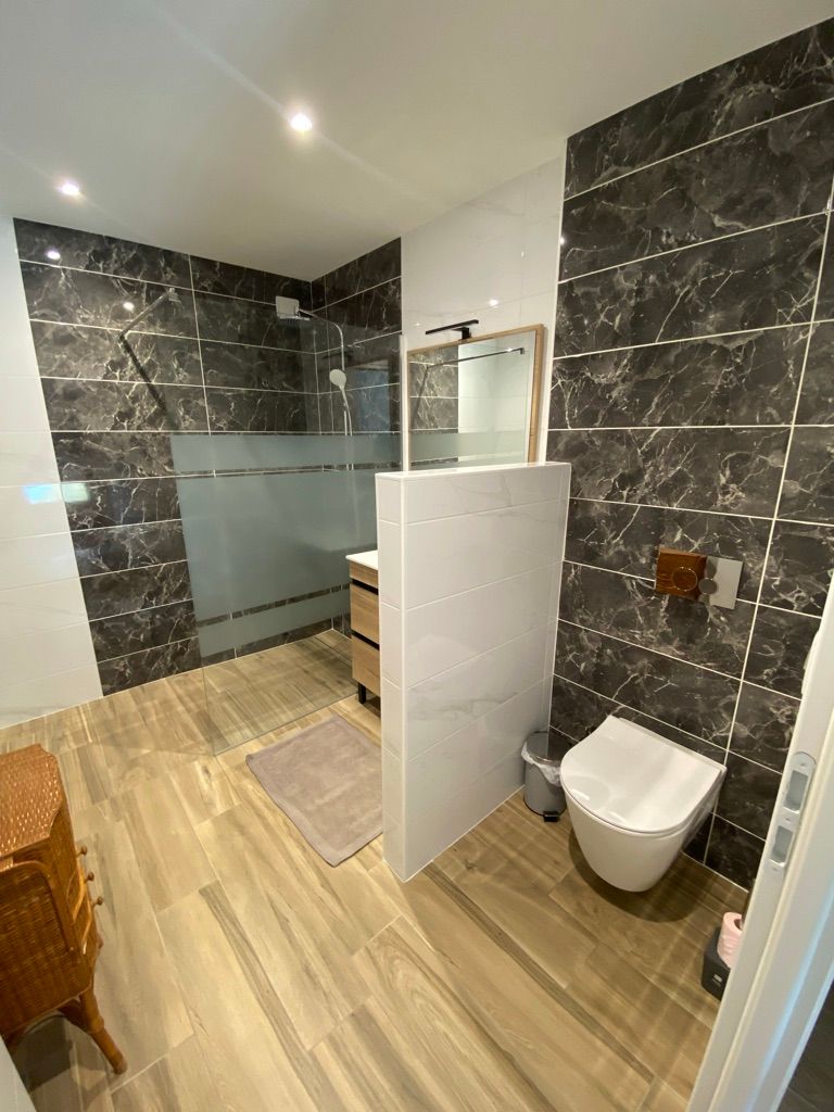 Le logement comprend une entrée avec placards rangement, wc indépendant. Un séjour avec espace salon (canapé, 2 fauteuils, TV), 2 tables pour les repas, une cuisine intégrée (lave-vaisselle, réfrigérateur, congélateur) donnant sur une terrasse avec salon de jardin et plancha. De cet espace séjour, accès à une chambre (1 lit(…)