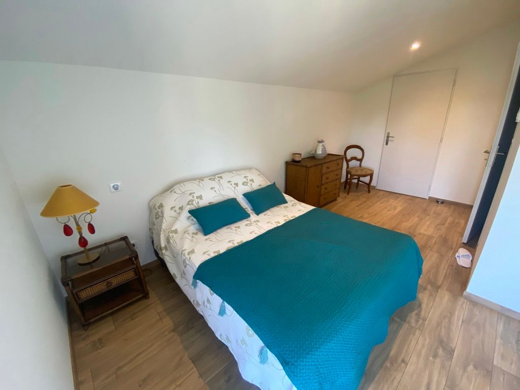 Le logement comprend une entrée avec placards rangement, wc indépendant. Un séjour avec espace salon (canapé, 2 fauteuils, TV), 2 tables pour les repas, une cuisine intégrée (lave-vaisselle, réfrigérateur, congélateur) donnant sur une terrasse avec salon de jardin et plancha. De cet espace séjour, accès à une chambre (1 lit 160 avec salle d’eau et wc). A l’étage, une chambre (1 lit 140, salle d’eau) 1 chambre (2 lits 0,80, salle d’eau). WC indépendants. Garage et cellier avec lave-linge. Wifi dans le logement. Linge de lit et de toilette fournis compris dans le prix. Terrain enherbé devant la terrasse, cour gravillonnée, le tout entièrement clôturé. Toutes les pièces sont climatisées. Equipement bébé sur demande. Électricité en supplément selon relevé compteur arrivée/départ (8 kwh/ jour inclus dans le tarif)