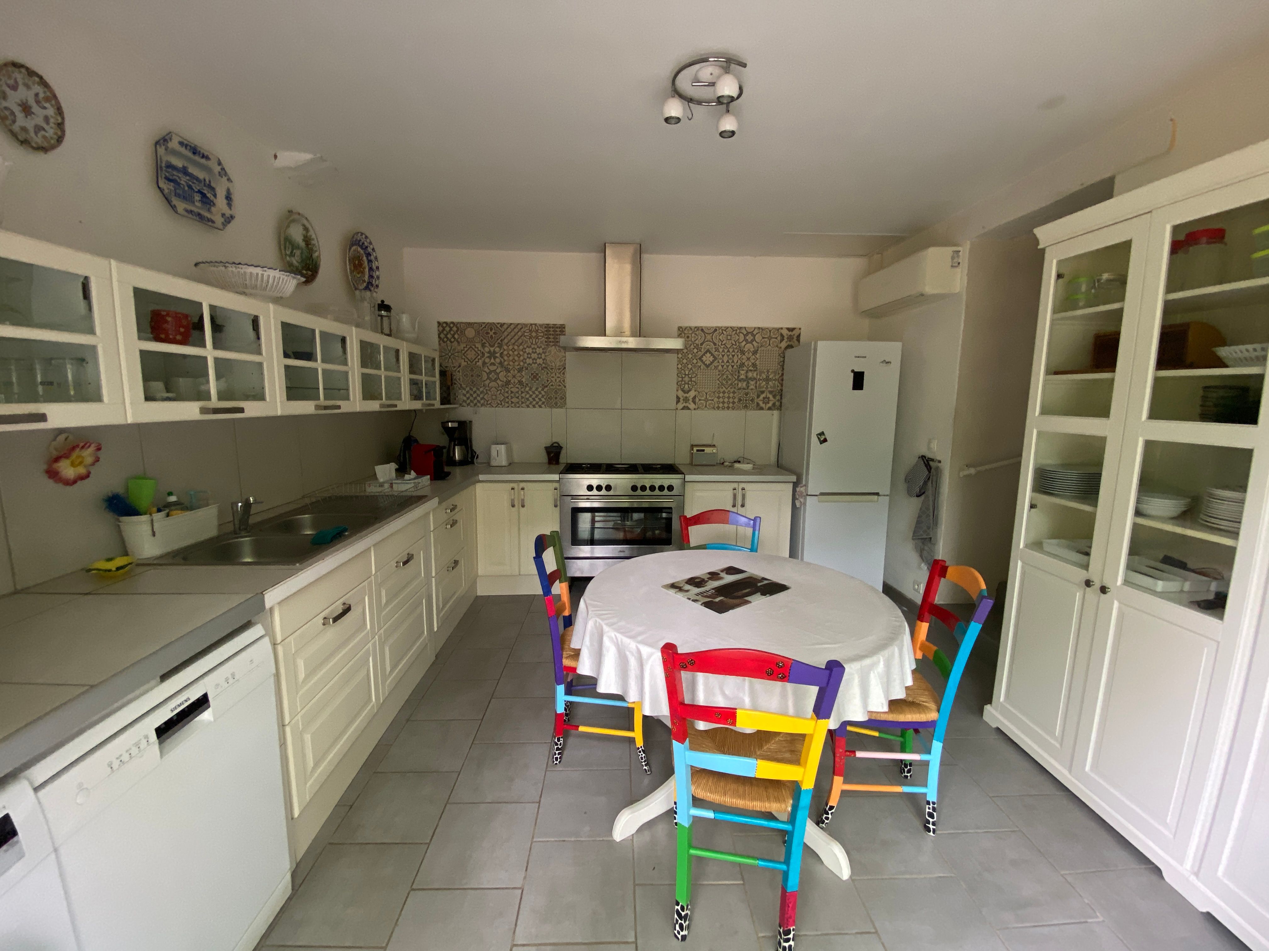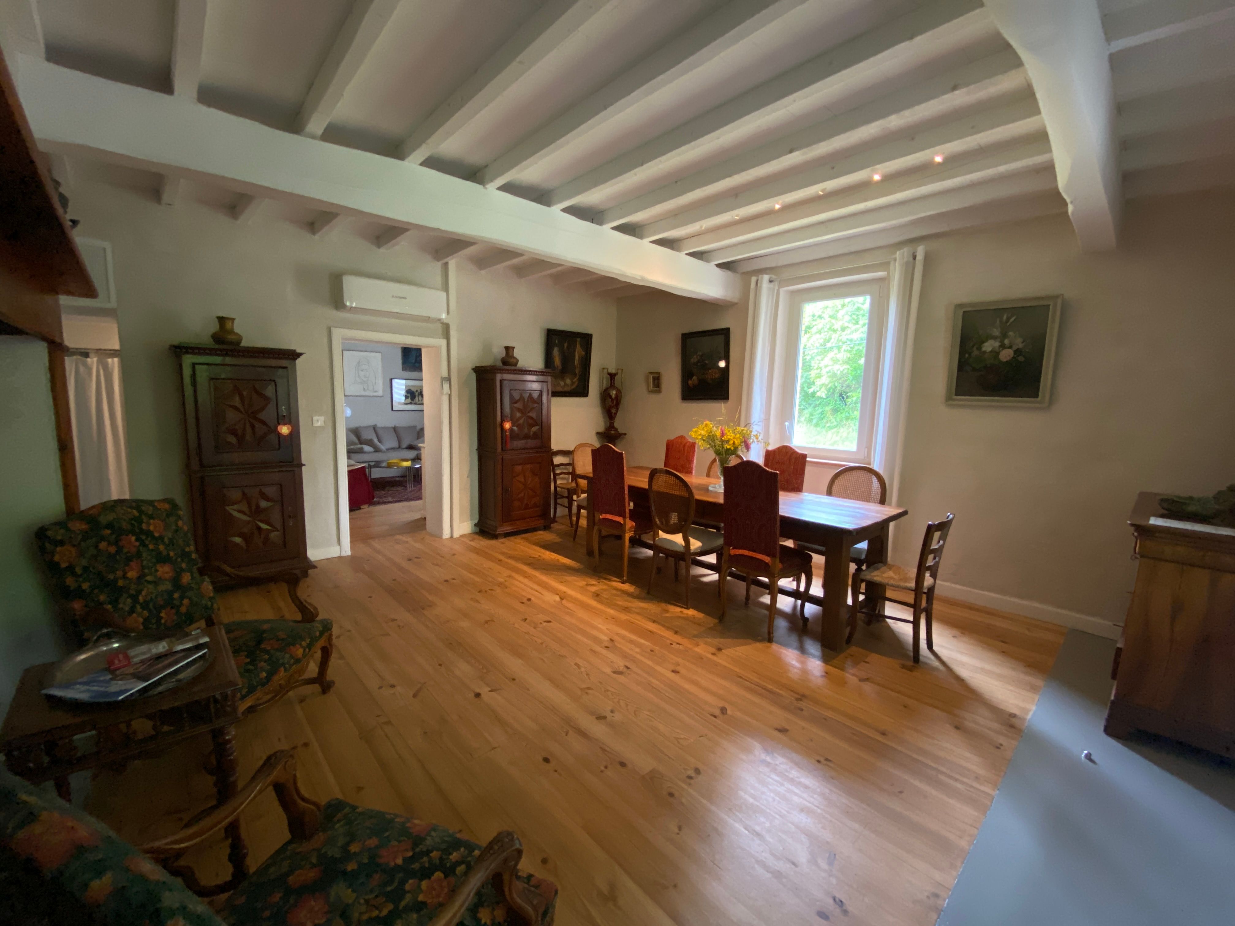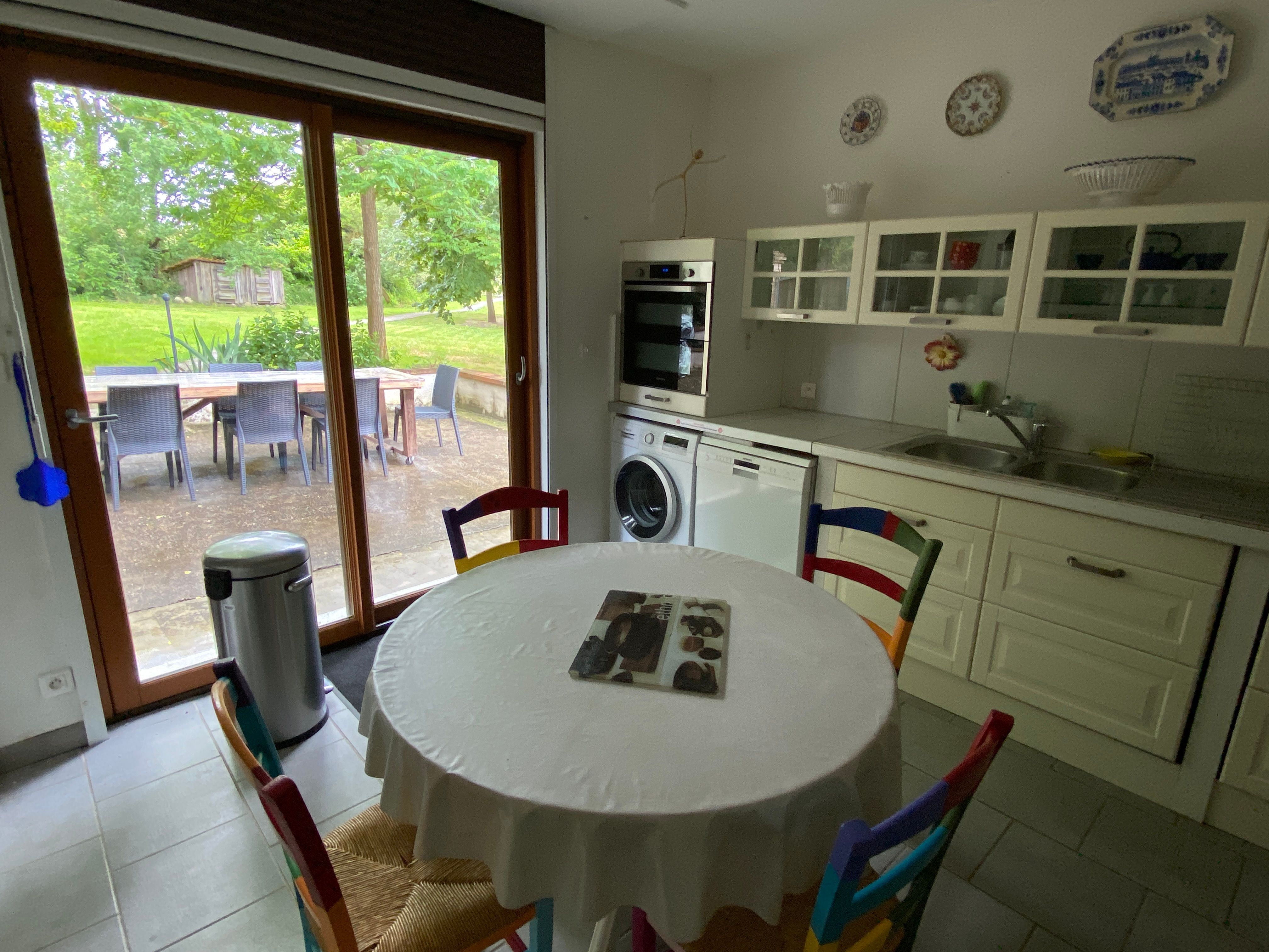 Casa perfecta para unas vacaciones en familia o con amigos: 4 habitaciones, una sala de juegos, un gran salón, un comedor grande y una cocina separada con vistas al jardín arbolado.