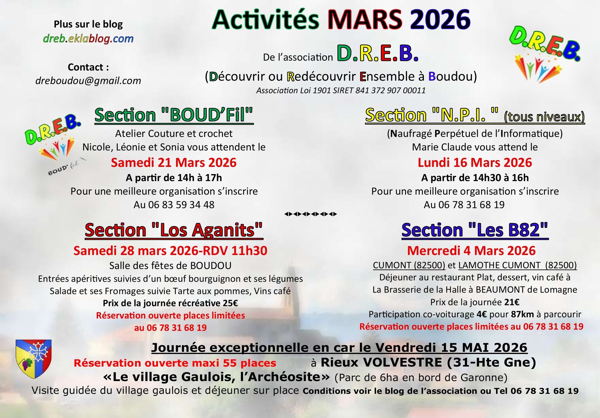Atelier, repas, sorties.. | Association DREB82200 Boudou