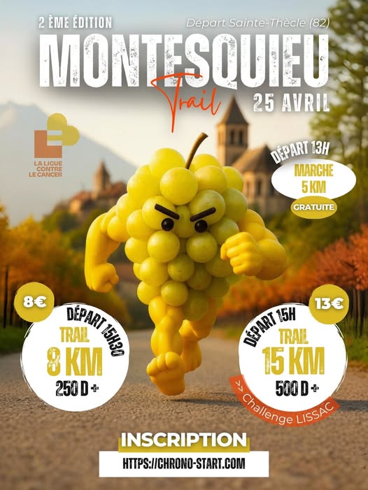 Deux parcours vous attendent : 8 km et 15 km, à travers les magnifiques chemins vallonnés de Montesquieu (82).